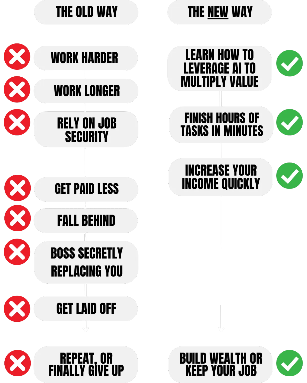 The difference? It’s like having a shield in a world of job eating robots. Once you’ve tried using AI strategically to secure your role, you can NEVER go back.